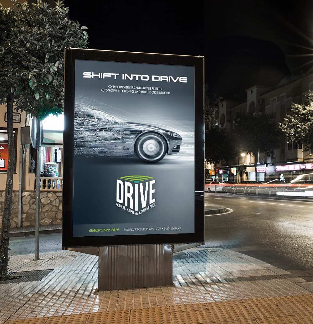 A brand new tradeshow launch is always a challenge for marketers and event directors. They needed to present Drive as an exciting new opportunity to provide its audience with the necessary education and sourcing opportunities that will advance their design skills. It needed to connect buyers and suppliers in the automotive electronics and intelligence industry. The new event required a design that evoked this relatively new industry as the future of transportation.