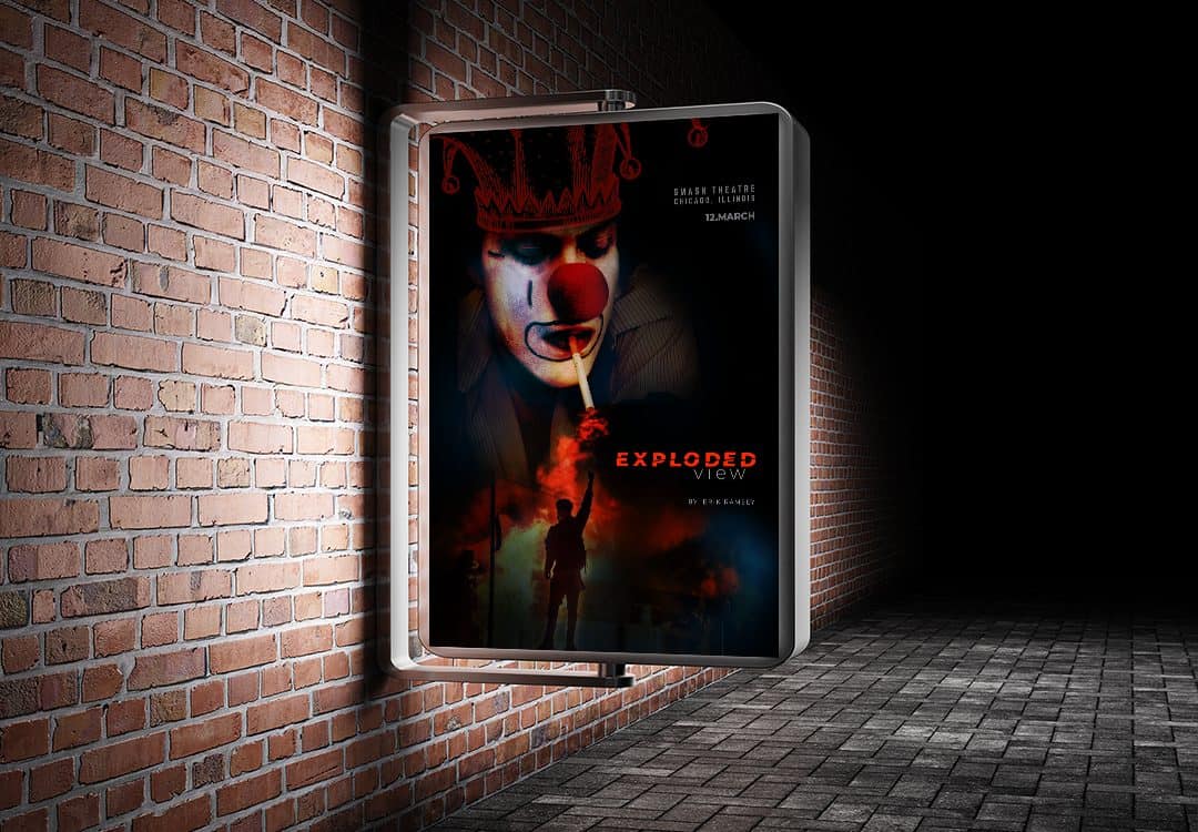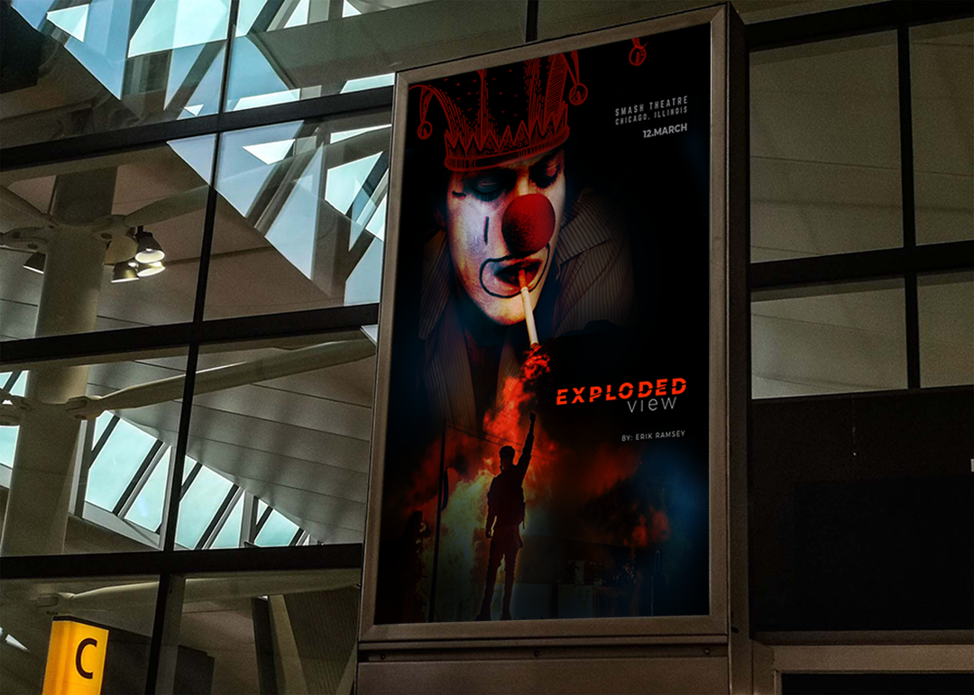 Smash Theatre in Chicago, Illinois, and the plays’ producer asked me to create a print poster to promote the premiere of a new play Exploded View by playwright Erik Ramsey at the Chicago Cultural Center. The play draws its title from the concept of exploded views, commonly associated with the diagram used for assembling parts to create a finished product.
